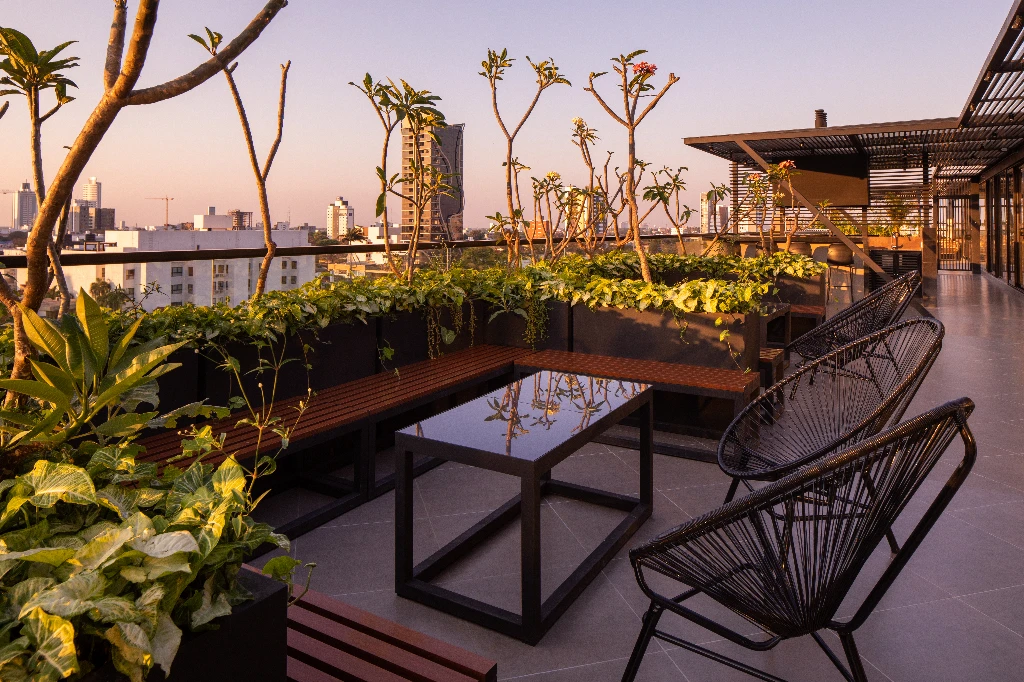Además de su aporte ambiental, los jardines verticales consolidan la identidad arquitectónica del proyecto, reforzando su carácter contemporáneo y sostenible dentro del tejido urbano de Equipetrol Norte.